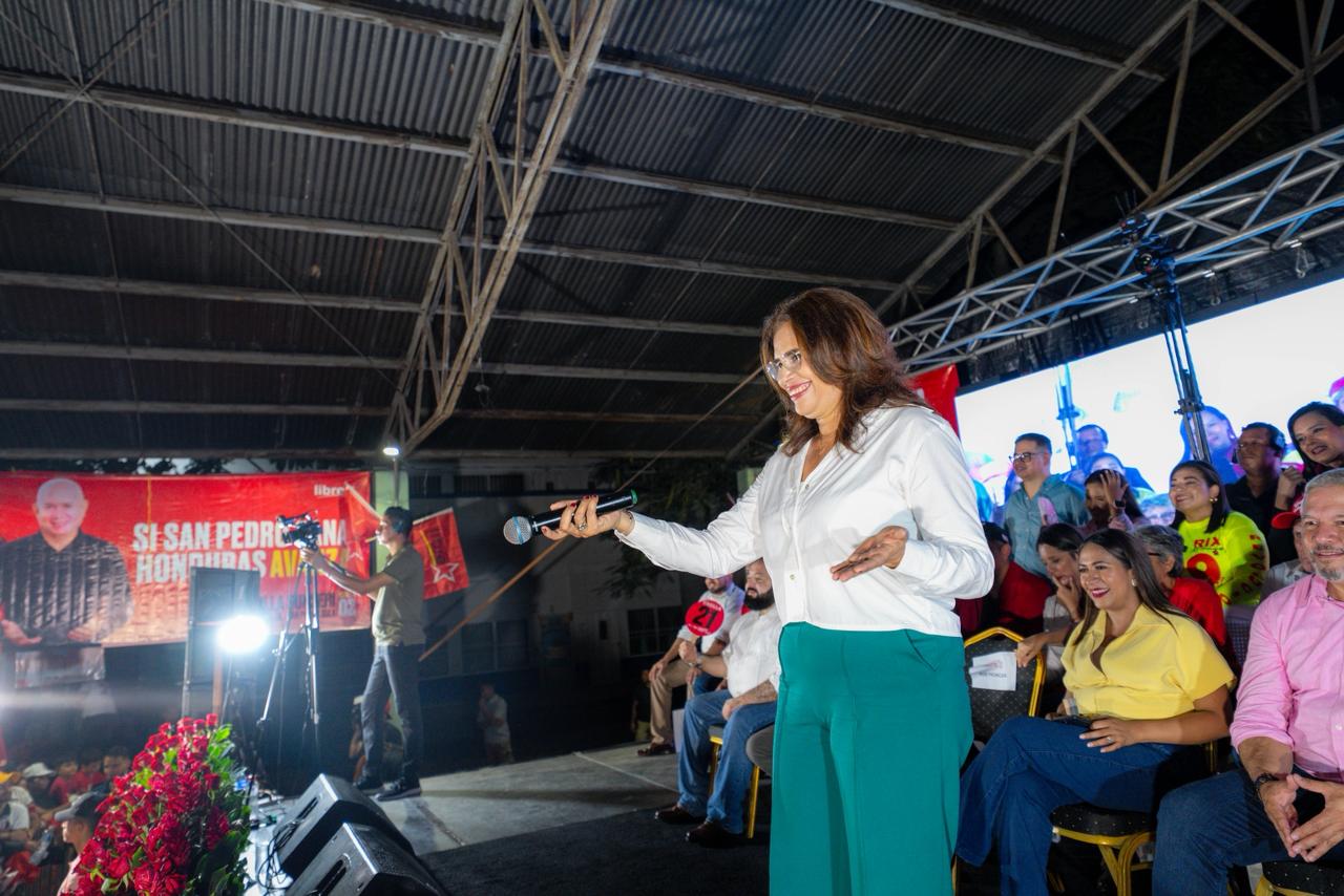 Chamelecón, 22 de octubre – La candidata presidencial se presentó esta noche al popular sector de Chamelecón en la Capital Industrial acompañada de su formula de candidatos a diputados por cortés, sus designados presidenciales y el próximo alcalde de San Pedro Sula, Rodolfo Padilla Sunseri.
