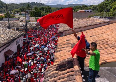 “La dictadura no solo privatizó la ENEE, también entregó 14 ríos y asesinó. Así como en el siglo XVI se dio muerte a Lempira por defender estos territorios, en nuestra época asesinaron a Berta Cáceres, símbolo de resistencia en defensa del medio ambiente, de los ríos y de los pueblos originarios, que siguen presentes hasta hoy.”